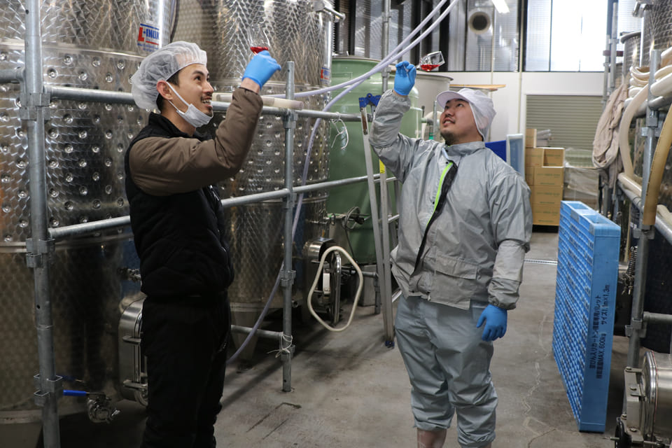 濾過は製品の安定性を高める一方で、旨味や厚みを失う側面もあります。小坂七滝ワイナリーでは、その利点とリスクを十分に理解したうえで、寒冷地・小坂の厳冬期を利用し、澱を自然に沈殿させる方法を選択。衛生・品質管理を徹底しながら、上質な上澄みのみを瓶詰めしています。