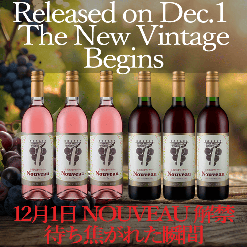 |12月の冷たい空気に灯りがともり始める頃、小坂七滝ワイナリーの新酒がついに解禁。今年のヌーヴォーがあなたの冬を彩り、年の締めくくりにふさわしい一杯を届けます。