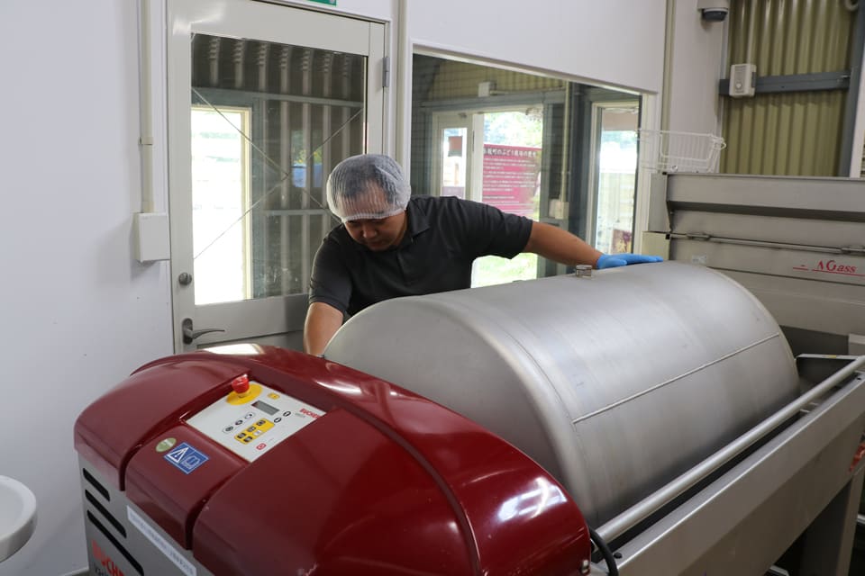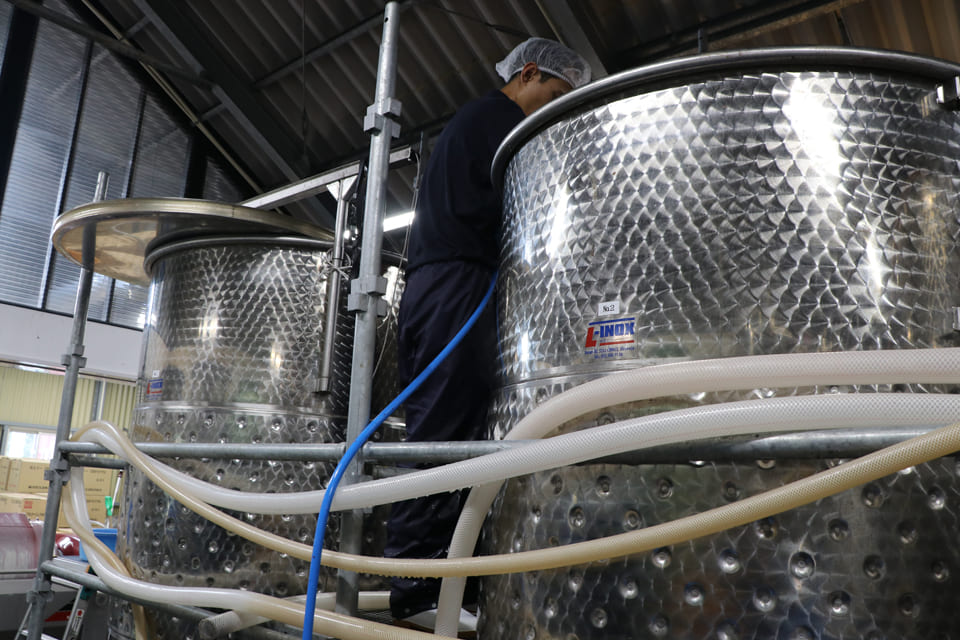 こうした仕込みを支えているのが、日々メンテナンスを欠かさない仕込み機械です。収穫が始まる前に隅々まで清掃し、部品を点検し、故障や不具合がないかを確認します。機械を常に清潔に保つことは、発酵の妨げを防ぐだけでなく、ワインの仕上がりに直結します。小さな汚れや異物混入が、香りや味わいを大きく左右してしまうためです。仕込みの現場では、畑と同じくらいの緊張感と丁寧さが求められます。